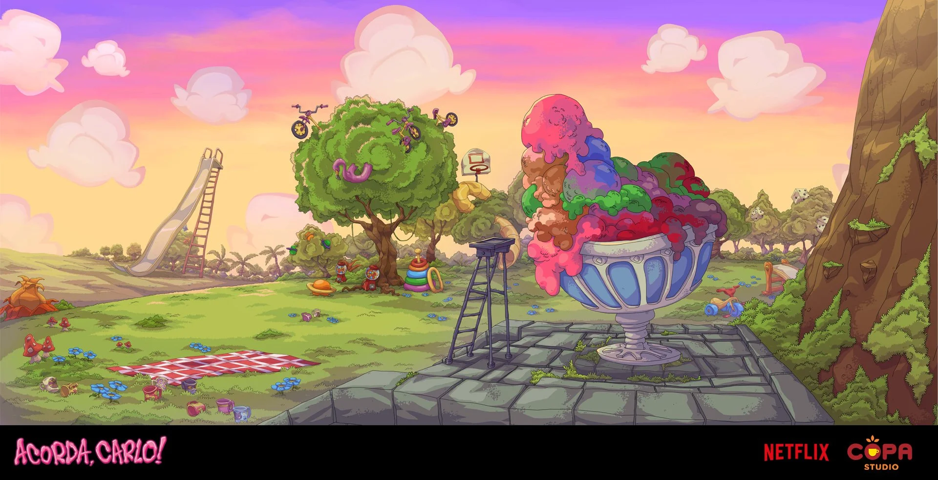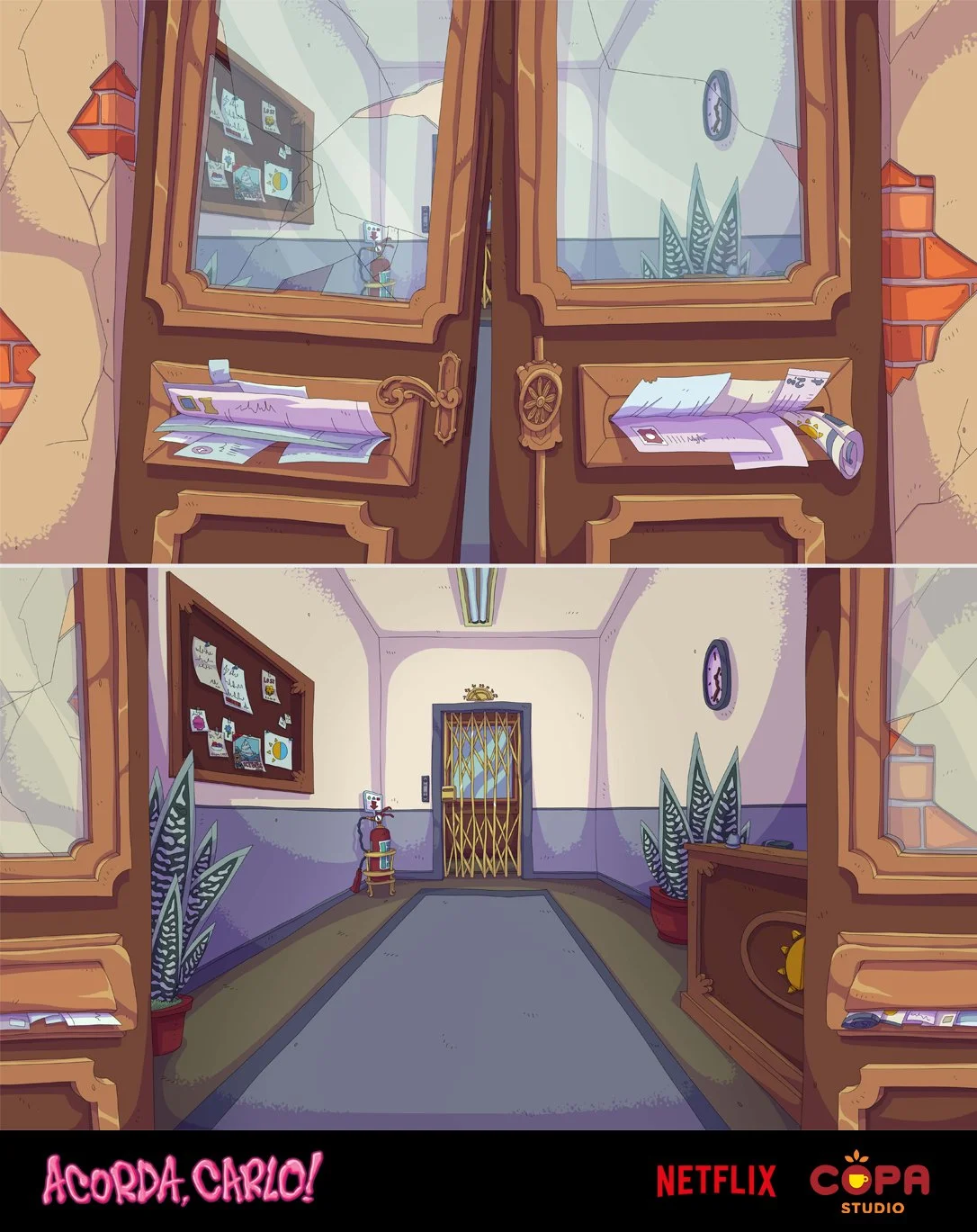 Samples of background Layout and Color done for Netflix's 2D animated show Acorda, Carlo! (Wake up, Carlo!),